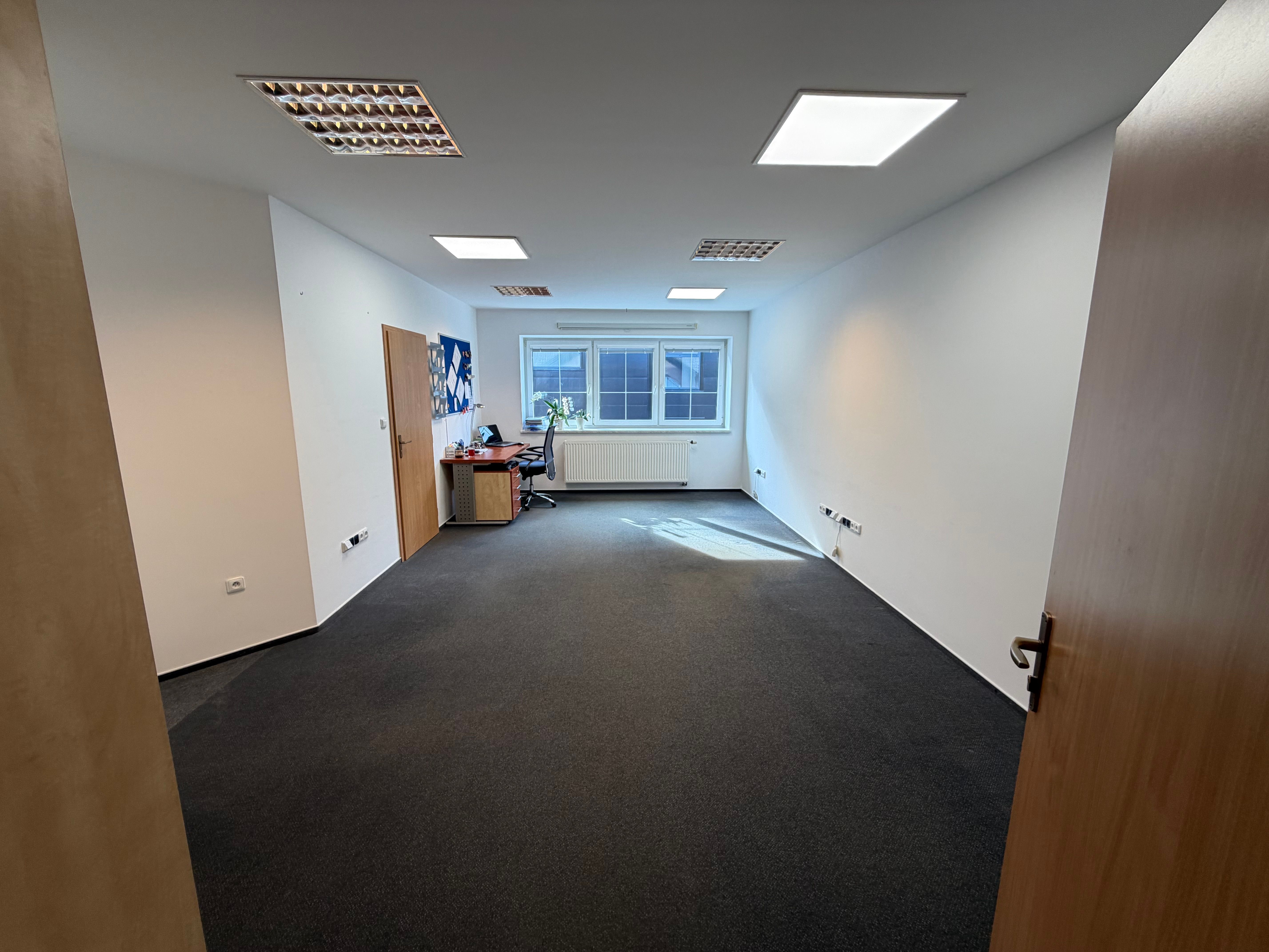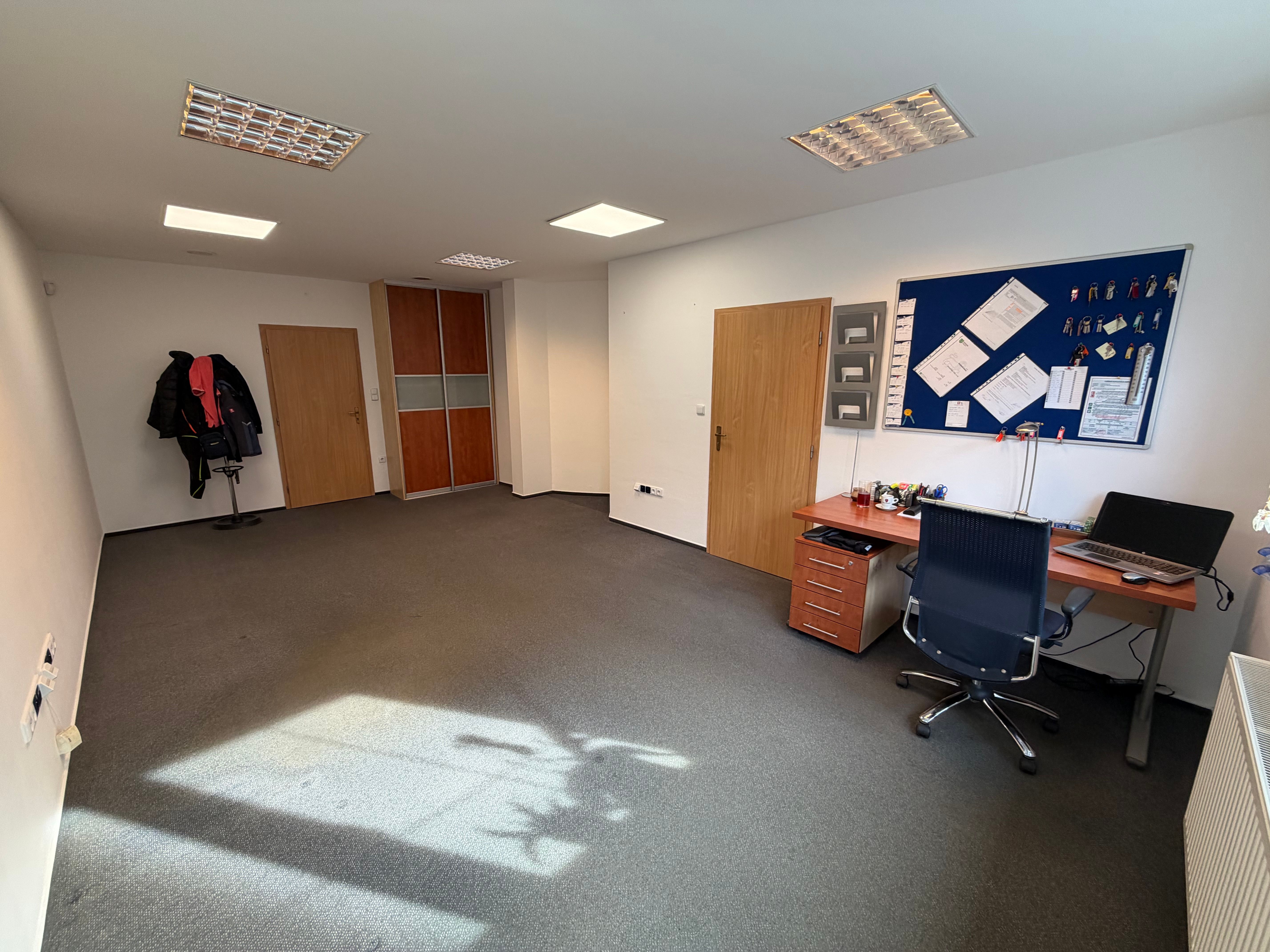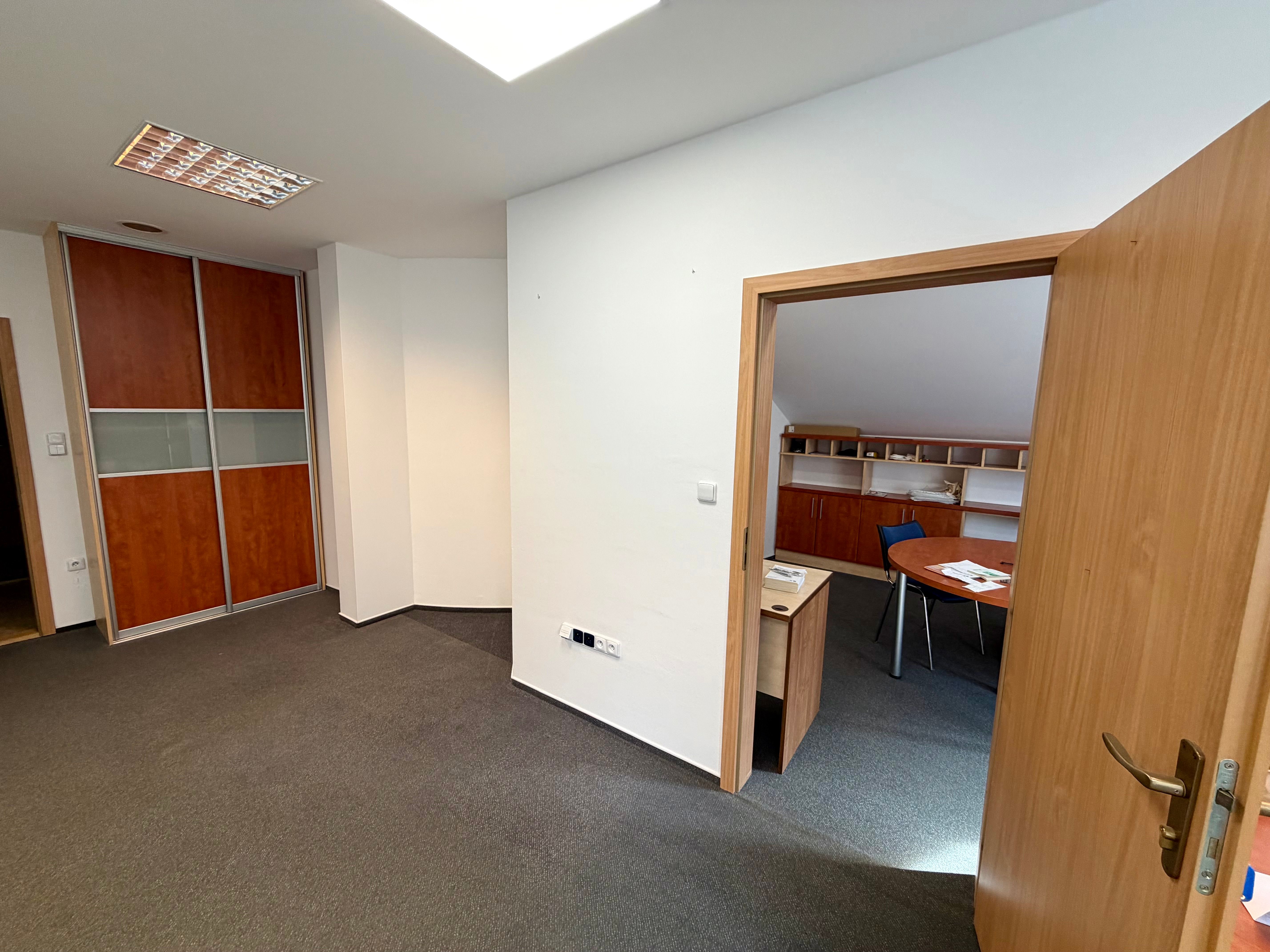 Při zájmu možnost pronájmu také sousední kanceláře( ev.č. 24) o velikosti 15 m2, které jsou propojeny dveřmi, přičemž každá kancelář má svůj vlastní vstup z chodby.